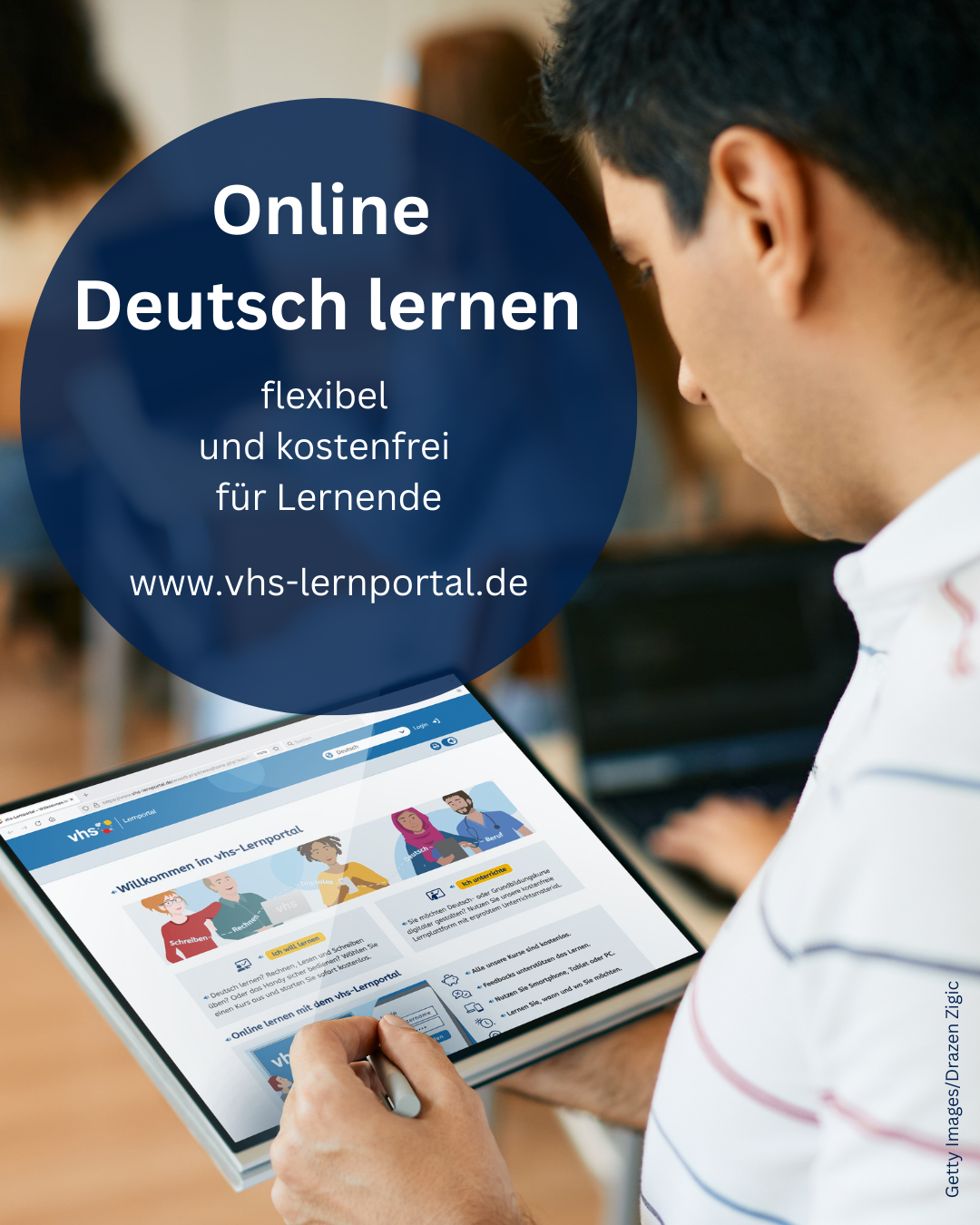 Infobroschüre "Deutsch lernen mit dem vhs-Lernportal"